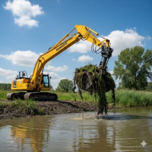 ภารกิจฟื้นฟูระบบนิเวศทางน้ำ: เจาะลึกการ “เช่ารถแบคโฮ” สำหรับงานขุดลอกคลองและงานชลประทานครบวงจร