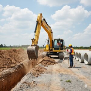 เจาะลึกการ “เช่ารถแบคโฮ” สำหรับงานขุดวางท่อ: วางรากฐานระบบสาธารณูปโภคอย่างมืออาชีพ